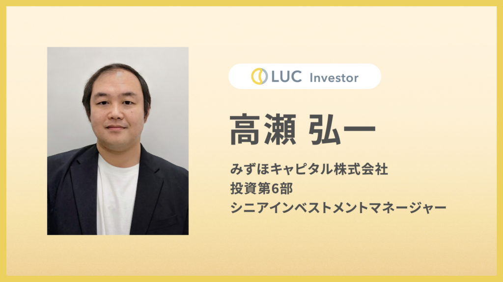 みずほキャピタル株式会社 投資第6部 シニアインベストメントマネージャー 高瀬 弘一